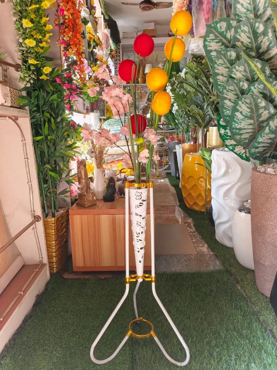Brighten your space with elegance and color using the Artificial Floral Arrangement (Colored Ball Stems in White Gold Stand Vase) — a stylish décor piece that combines vibrant beauty with modern luxury.