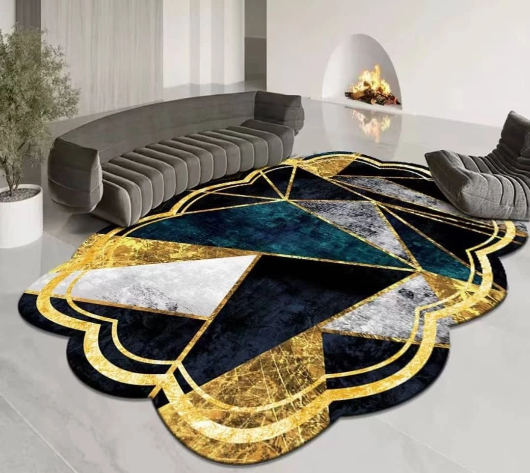 Elevate your space with the Luxury Geometric Carpet Rug (Black Teal Gold Mix) — a bold and stylish décor piece that blends rich black tones with vibrant teal and elegant gold accents for a modern, high-end look.
