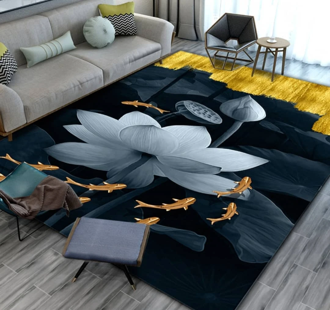 Transform your space with the Luxury Lotus Artistic Carpet Rug (Dark Blue Gold) — an elegant décor piece inspired by the beauty of the lotus flower, blending deep blue tones with radiant gold accents for a calm and luxurious atmosphere.