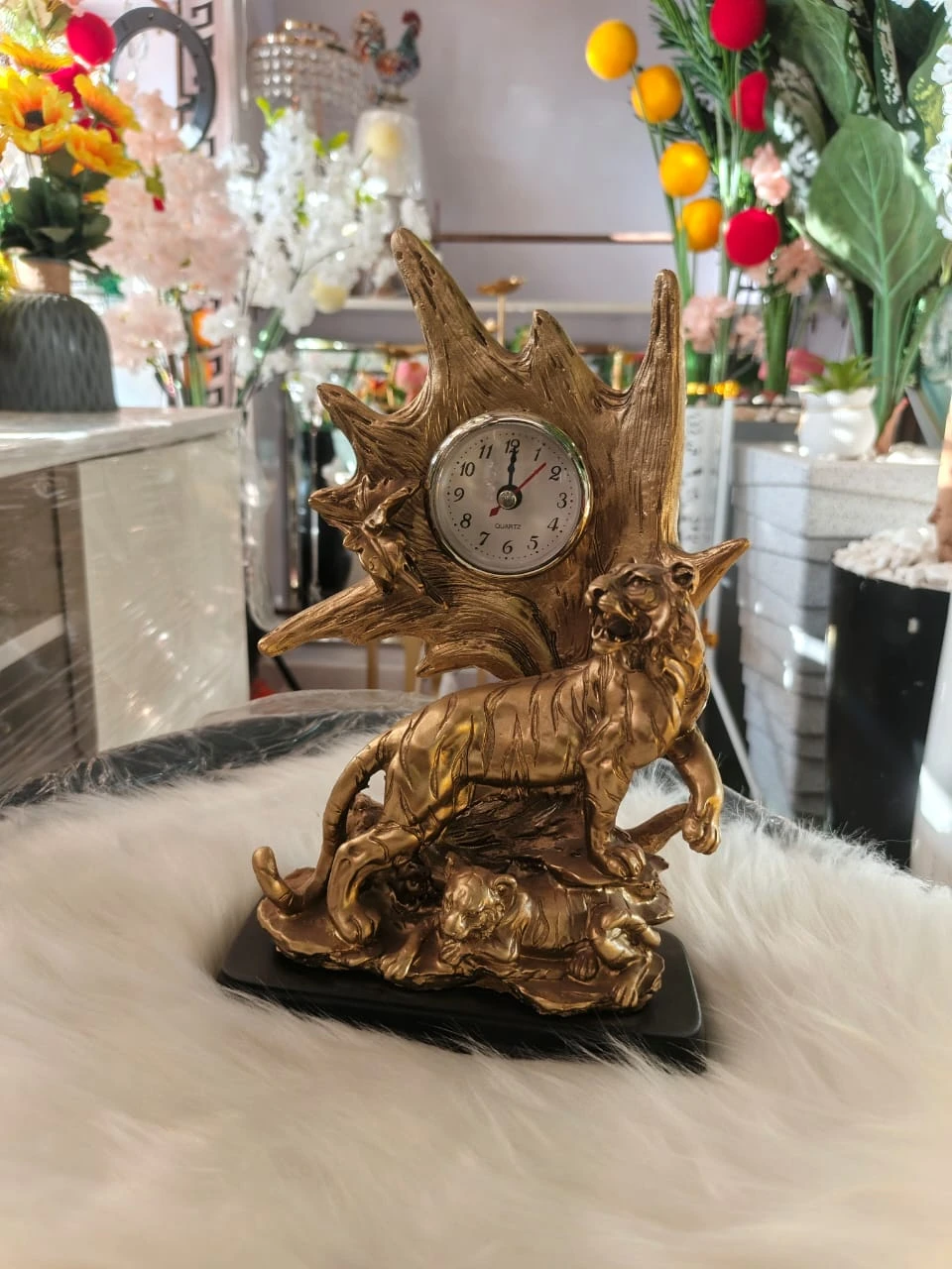 - 1 x Tiger Decorative Clock Sculpture (Gold Finish)
