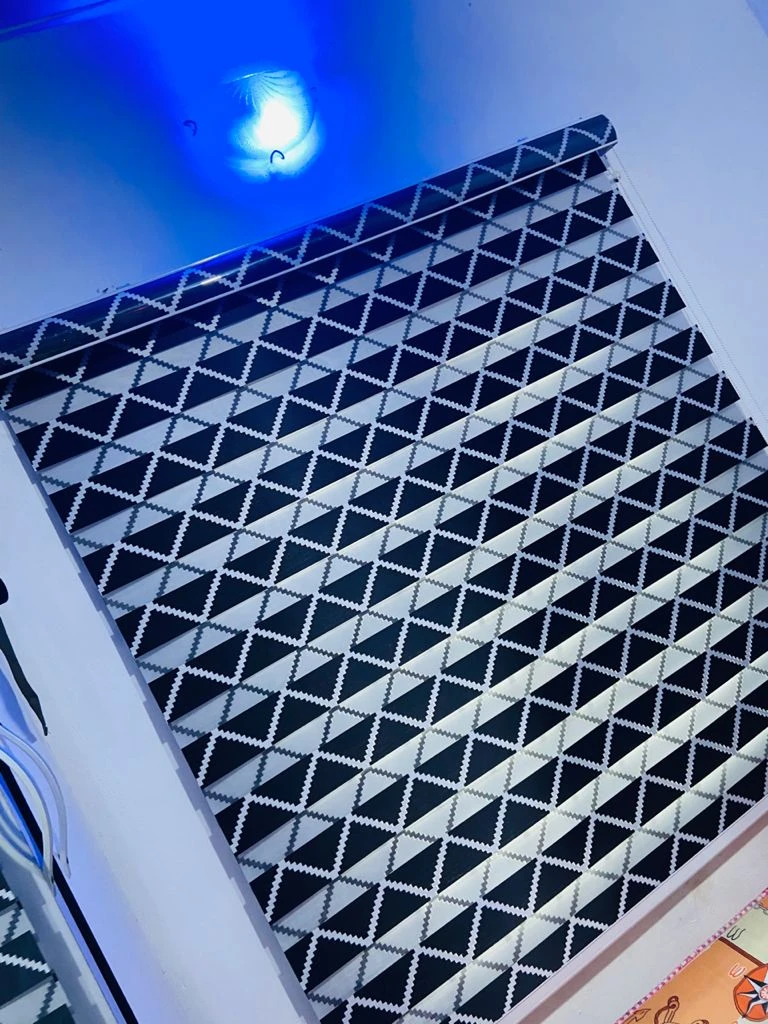 Upgrade your windows with the Zebra Window Blind (Triangle Pattern – Black & White) — a bold and modern window solution that combines geometric design with flexible light control.
