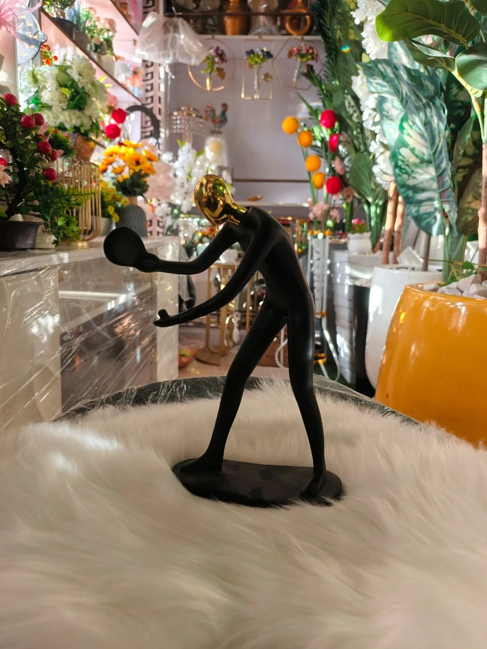 Make a bold artistic statement with the Abstract Black & Gold Standing Figure Sculpture (Ball Holder) — a modern décor piece that blends creativity, symbolism, and luxury into one striking design.