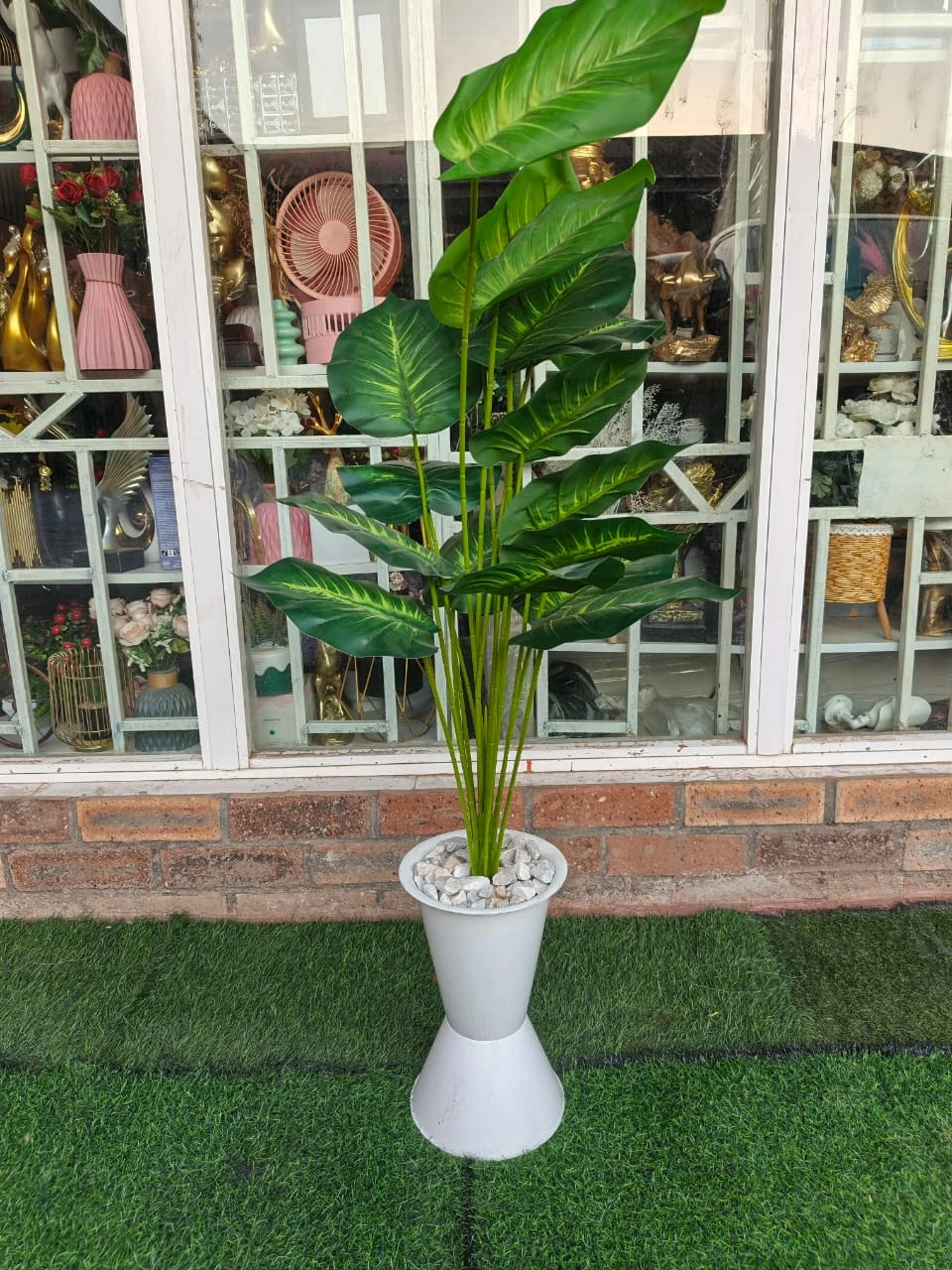 - 1 x Artificial Dieffenbachia Plant (White Tall Vase Variant)