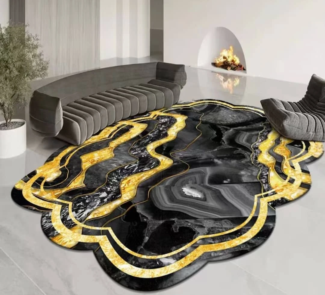 Upgrade your space with the Luxury Marble Pattern Carpet Rug (Black Gold Waves) — a premium décor piece inspired by natural marble textures, featuring flowing gold wave patterns that bring elegance and modern luxury into any room.